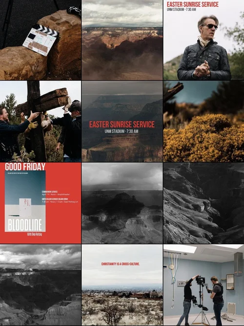 I spent 3 years as the Social Media Coordinator for Calvary Church in Albuquerque, New Mexico. From 2018 - 2021, I created and curated content for their social accounts, the main focus being their Instagram. My background in photography elevated the feed to how Calvary wished to be portrayed - as an inviting megachurch with a world renowned pastor. From event promotion to weekly quotes to stories of each service, I learned so much about how to work with short turnaround times and impending deadlines. Here are some images that highlight the feed I created, the copywriting I’d use for captions, and the quotes that were used for Twitter.