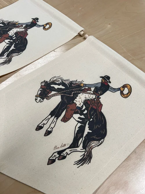 Starting in September 2022, I began working at a print shop in Nashville called Canvastry. We were a five member team, three of us being the main printing crew. This portfolio is to show the various types of items and art styles I learned to print during my time there.